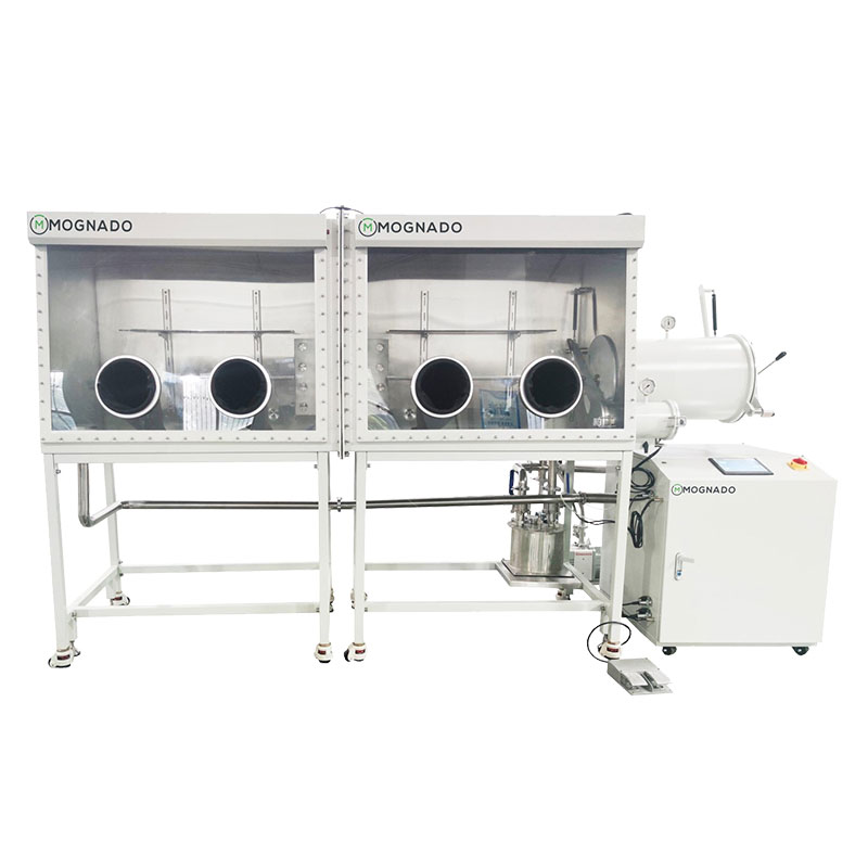 手套箱箱体内的工作气体在箱体与净化柱(水氧吸附器)之间,在PLC的控制和监视下,通过管道,循环风机等进行密闭循环。工作气体循环经过净化柱时,其所含水分和氧气被吸附掉,然后再返回箱体内,随着循环时间的推移,箱体内工作气体中的水氧含量会逐步减少,*终达到小于1ppm的指标。净化柱在一定时间的循环后会吸附饱和,可进行再生,重复使用。